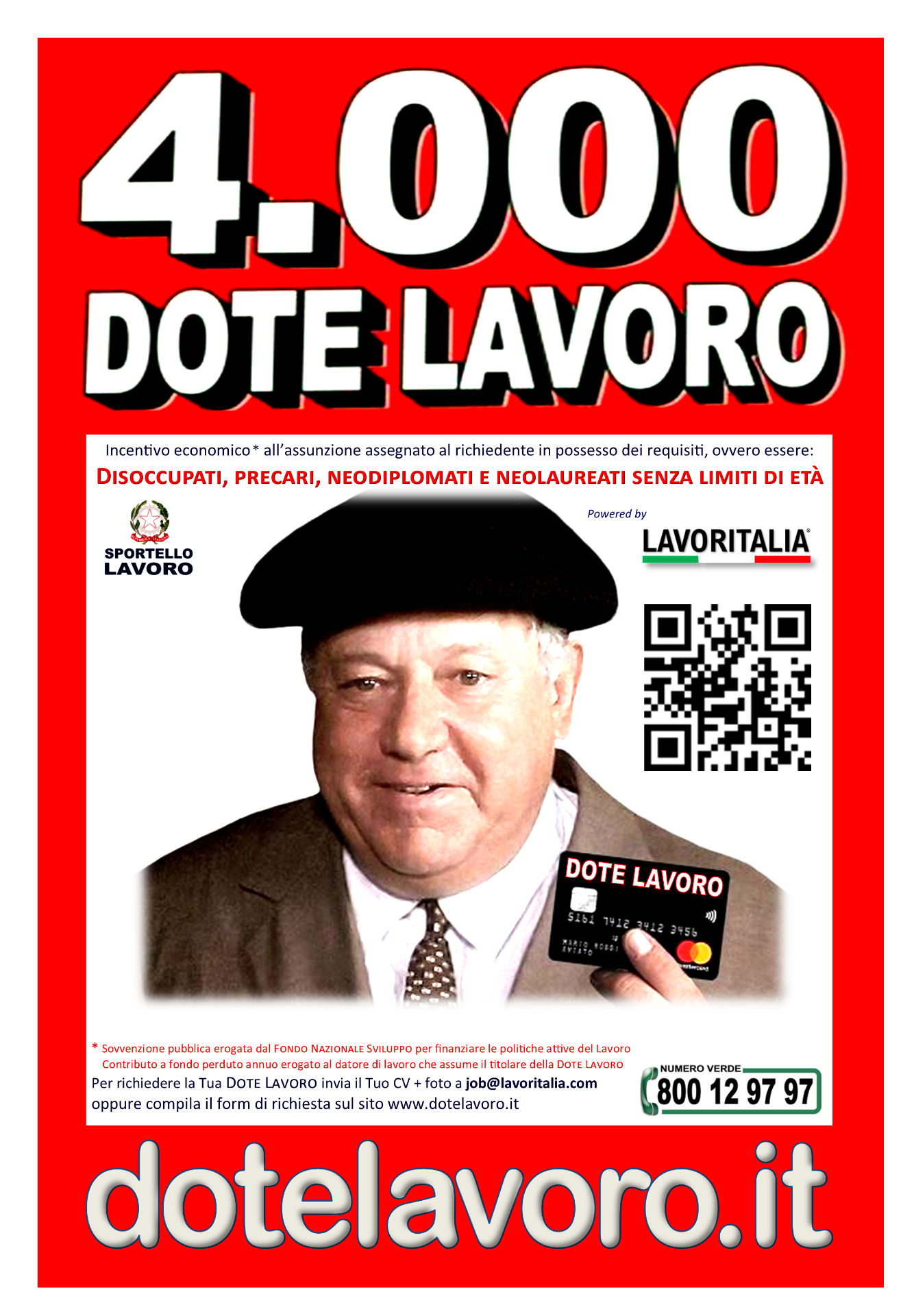 E' disponibile la Dote Nazionale Lavoro di 4.000 euro come incentivo all'assunzione per tutti i residenti in Italia disoccupati, sottoccupati o occupati irregolarmente.